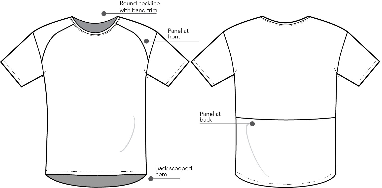 FABRICS: Cotton jersey, bamboo jersey, wool/merino jersey, or suitable light to mid-weight t-shirt style fabric. Sports performance and breathable fabrics.