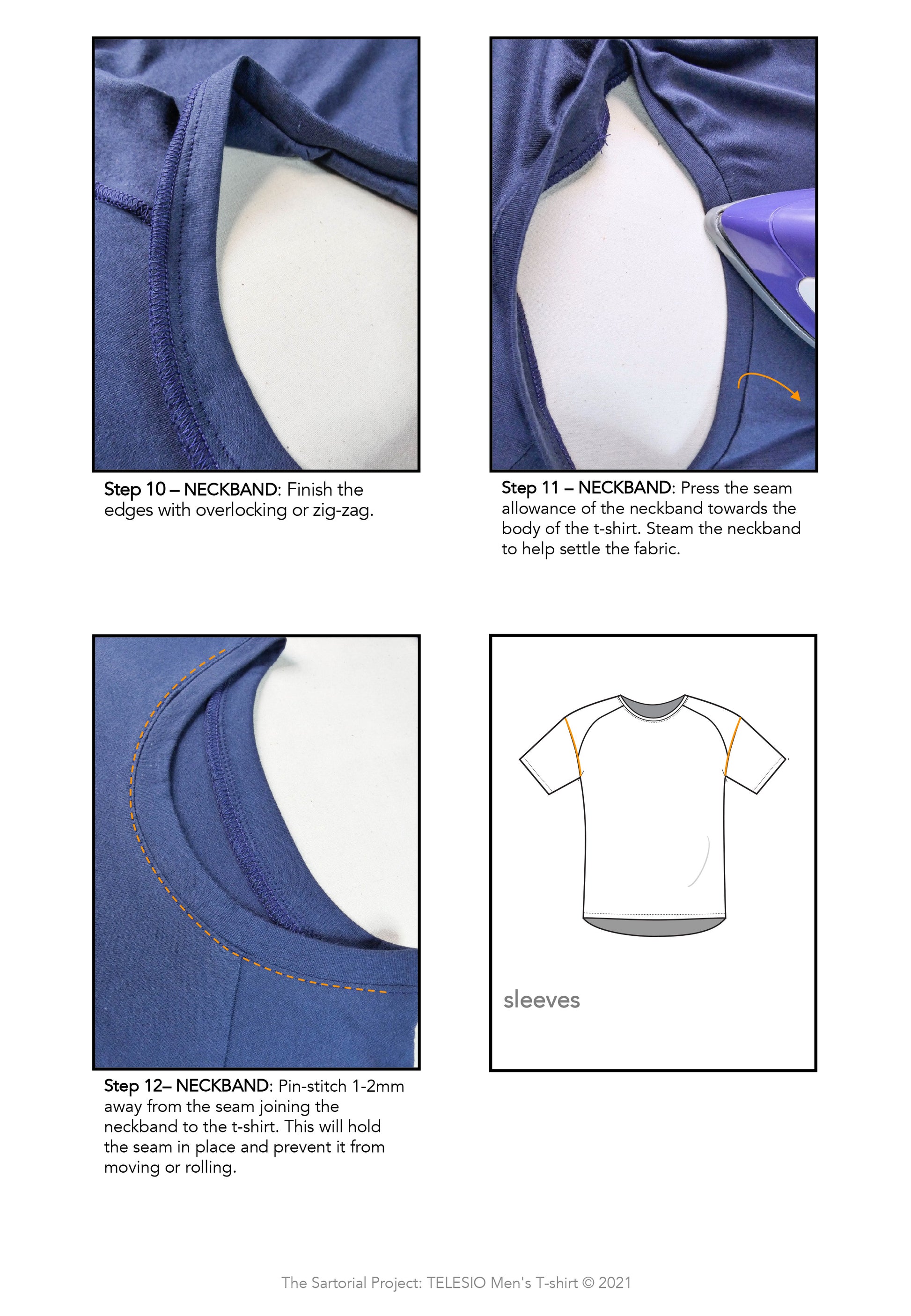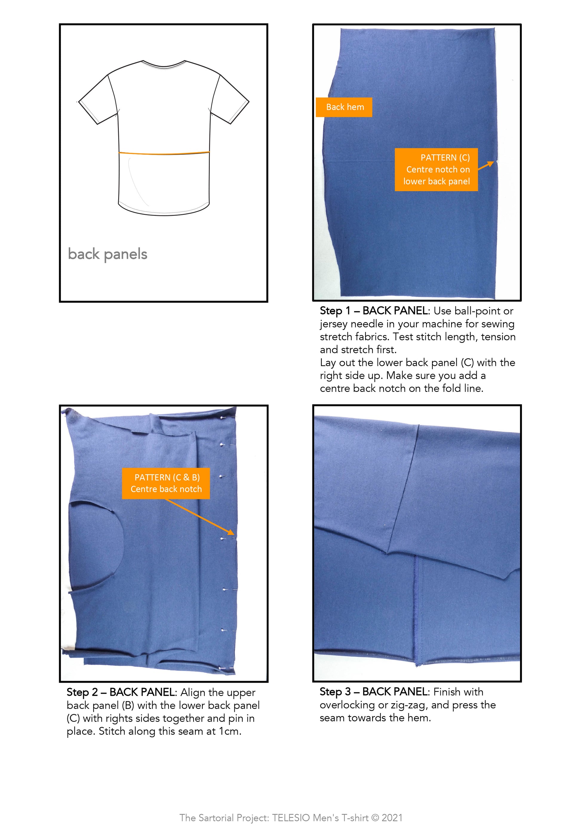 DESCRIPTION: The Telesio men's t-shirt is a sporty addition to any wardrobe. The style is relaxed and features a round neckline with neckband, lower back and front shoulder panels and short tapered sleeves. The t-shirt can be spliced with contrasting, or sports performance fabrics for breath-ability. The TELESIO can be dressed up or worn to the gym for a workout. The garment on the cover and included in the step-by-step instructions has been made in 100% organic single jersey (stretch) cotton fabric.